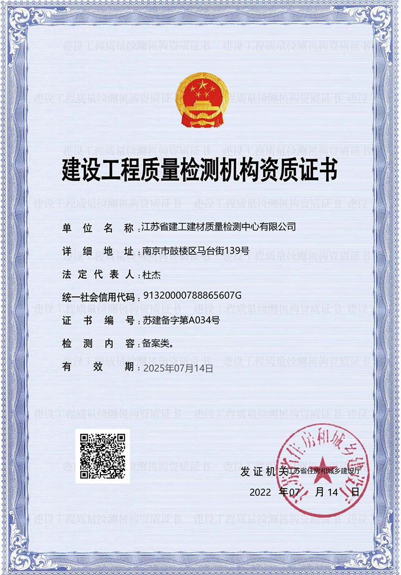 建設(shè)工程質(zhì)量檢測(cè)機(jī)構(gòu)資質(zhì)證書(shū)