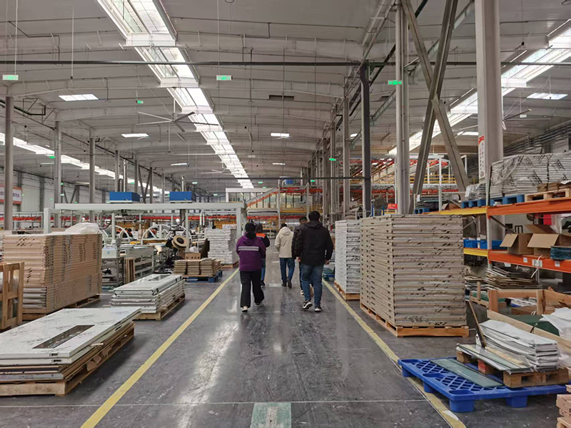 首次會議上,由檢查組長唐國軍介紹本次綠色產品認證檢查的組員,闡述后續具體檢查任務。會后,在南京馬斯德克門業有限公司綠色認證負責人王強的帶領下參觀工廠車間,了解到馬斯德克一體化金屬面夾芯板系統產品以冷軋熱鍍鋅鋼板或鋁板為基材經涂覆后為裝飾面,以金屬瓦楞板或紙面石膏板為背襯材經粘接復合制作配合專用龍骨組合而成,主要用于工業及民用建筑中室內非承重墻和裝飾用內墻面以及吊頂。產品具有墻體重量輕、建筑負荷小、安裝便捷、可拆卸重復使用、節能環保、節約成本,同時具有堅固、耐震、隔聲等優點。