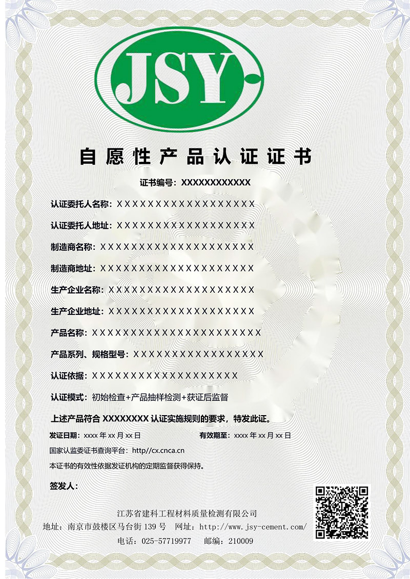 自愿性產品證書樣本